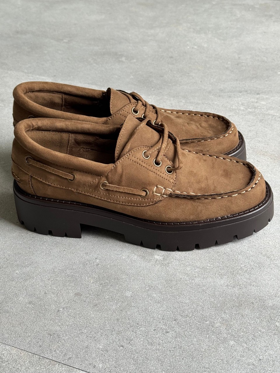 SCARPA STRINGATA MOCASSINO ECO PELLE LACCIO BICOLORE+OCCHIELLI COLORE BRUNITO FONDO ALTO CARRARMATO TACCO CM 4 CALZATA REGOLARE SE SI OSCILLA TRA...