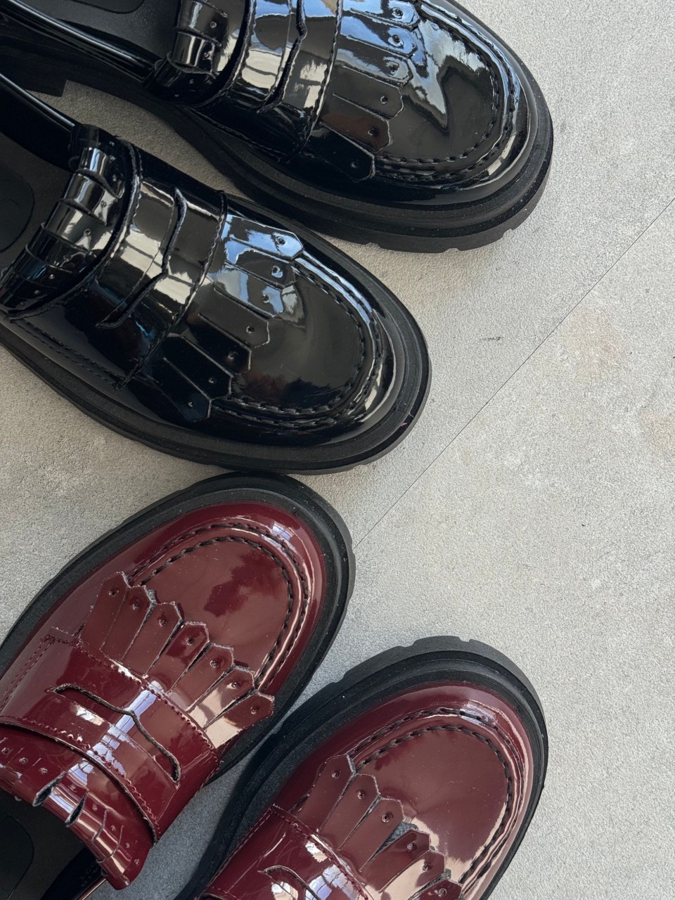 MOCASSINO IN ECOPELLE VERNICE TOMAIA CON FRANGIA SOLETTA CONFORT FONDO CARRARMATO CM 4 CALZATA REGOLARE SE SI OSCILLA TRA DUE NUMERI SI CONSIGLIA...