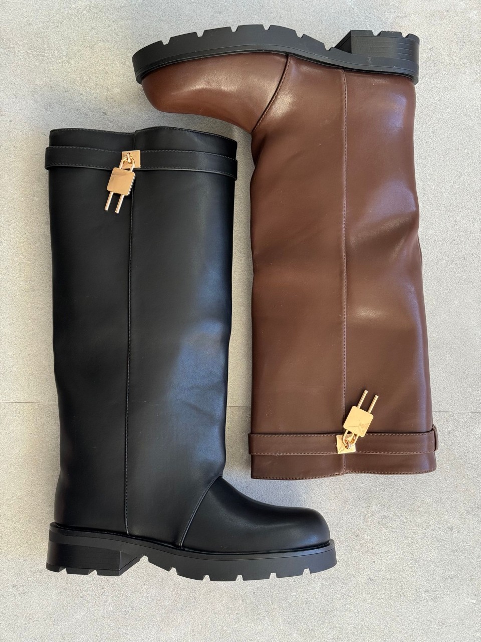 STIVALE IN ECOPELLE CERNIERA INTERNA LISTINO SU GAMBALE CON ACCESSORIO ORO FONDO GOMMA TACCO CM 2,5 CALZATA REGOLARE SE SI OSCILLA TRA DUE NUMERI...