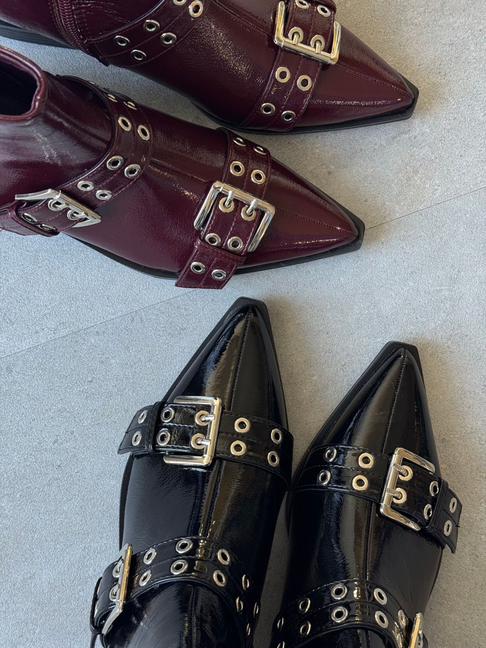 Stivaletto in pelle a portafoglio con fibbie brunite fondo gomma tacco 3 cm calzata regolare , se si dovesse oscillare tra due numeri acquistare...
