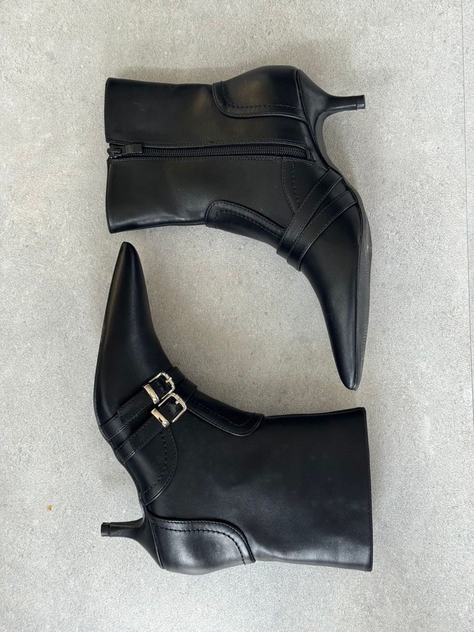 Tronchetto Nero a punta, con 2 due cinturini sul collo del piede su tomaia. Zip interna tacco 6 cm calzata regolare, se si dovesse oscillare tra...