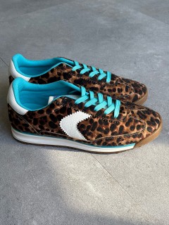 SNEAKERS IN ECOPELLE EFFETTO CAVALLINO MACULATO RIPORTI COLORE BIANCO FODERA IN TESSUTO AZZURRO LACCIO AZZURRO FONDO TRICOLORE IN GOMMA CALZATA REGOLARE SE SI OSCILLA TRA DUE NUMERI SI CONSIGLIA DI ACQUISTARE UN NUMERO IN PIU'