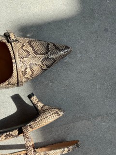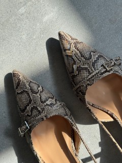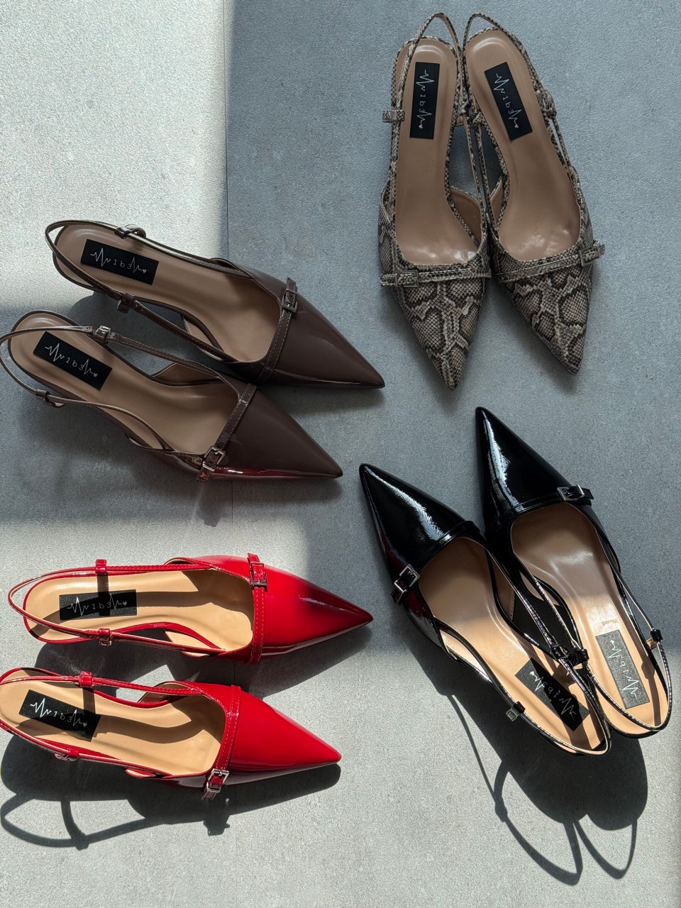 SLINGBACK A PUNTA IN ECOPELLE LISTINO DIETRO AL TALLONE LISTINO CON FIBBIA SU TOMAIA SOLETTA CONFORT TACCO CM 4 CALZATA REGOLARE SE SI OSCILLA TRA DUE NUMERI SI CONSIGLIA DI ACQUISTARE UN NUMERO IN PIU'