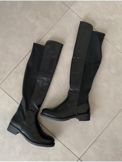 Stivale alto al ginocchio nero in ecopelle Punta arrotondata , gambale posteriore elastico e zip interna. tacco 3 cm. calzata regolare.
