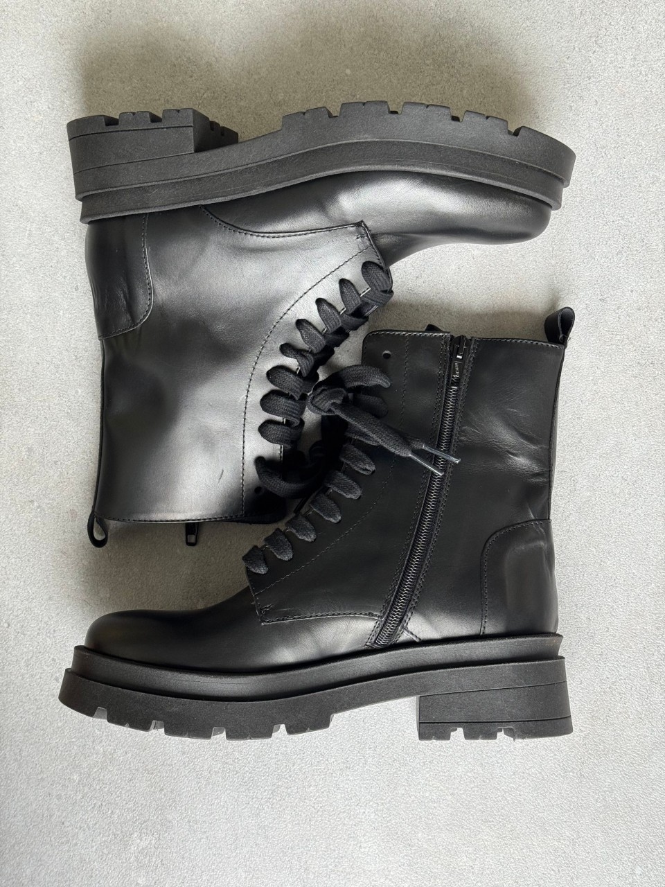 anfibio in pelle vitello nero zip interna fodera e soletta interna in pelle calzata comoda fondo in gomma carrarmato