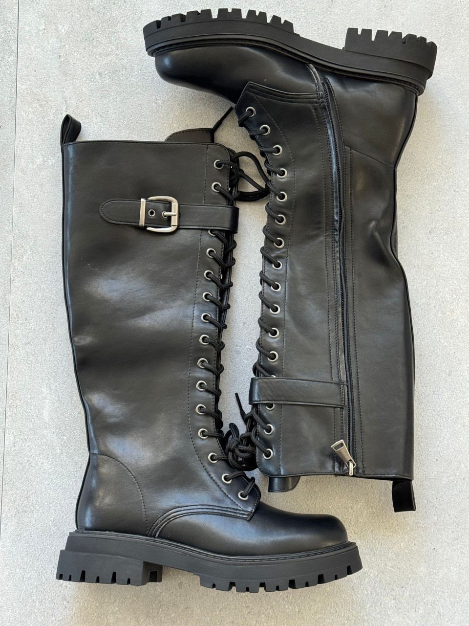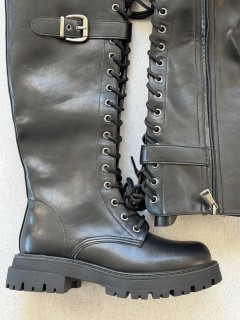 STIVALE IN ECOPELLE LACCIO + CERNIERA INTERNA LISTINO CON FIBBIA ATTORNO AL GAMBALE FONDO CARRARMATO H 3 CM CALZATA REGOLARE SE SI OSCILLA TRA DUE NUMERI SI CONSIGLIA DI ACQUISTARE UN NUMERO IN PIU'