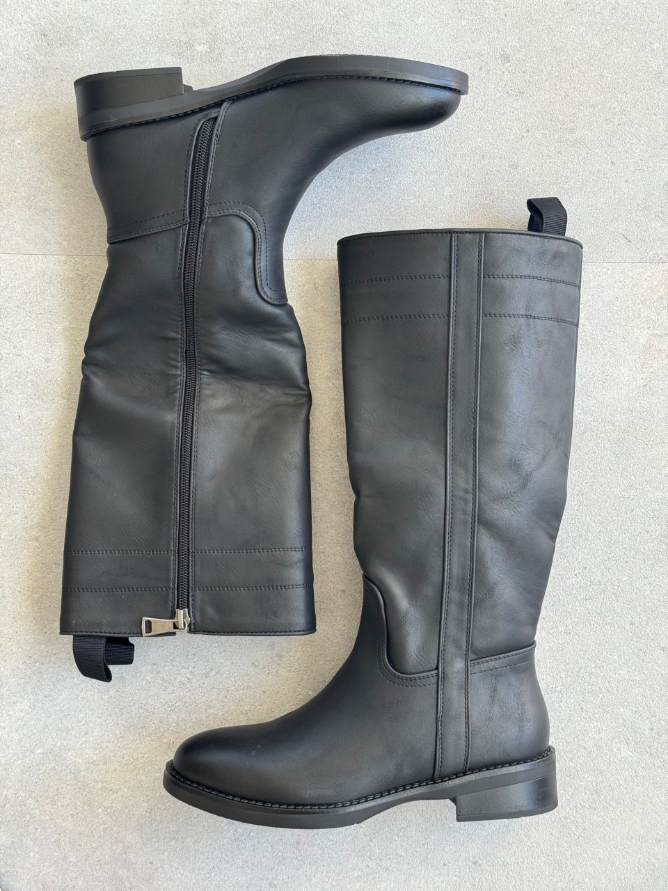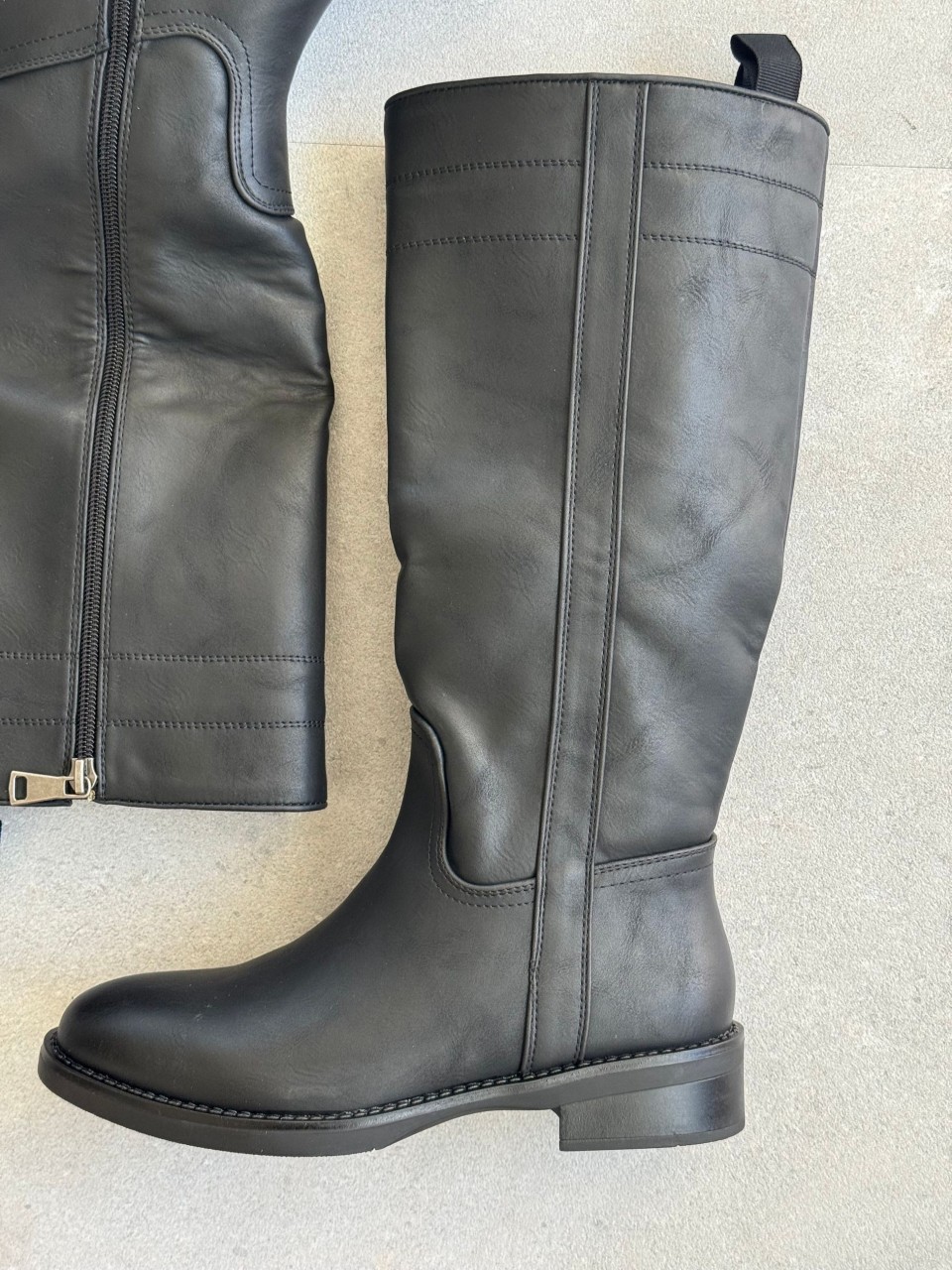 STIVALE IN ECOPELLE PUNTA ROTONDA GAMBALE DRITTO CERNIERA INTERNA FONDO GOMMA TACCO CM 2 CALZATA REGOLARE SE SI OSCILLA TRA DUE NUMERI SI CONSIGLIA DI ACQUISTARE UN NUMERO IN PIU'