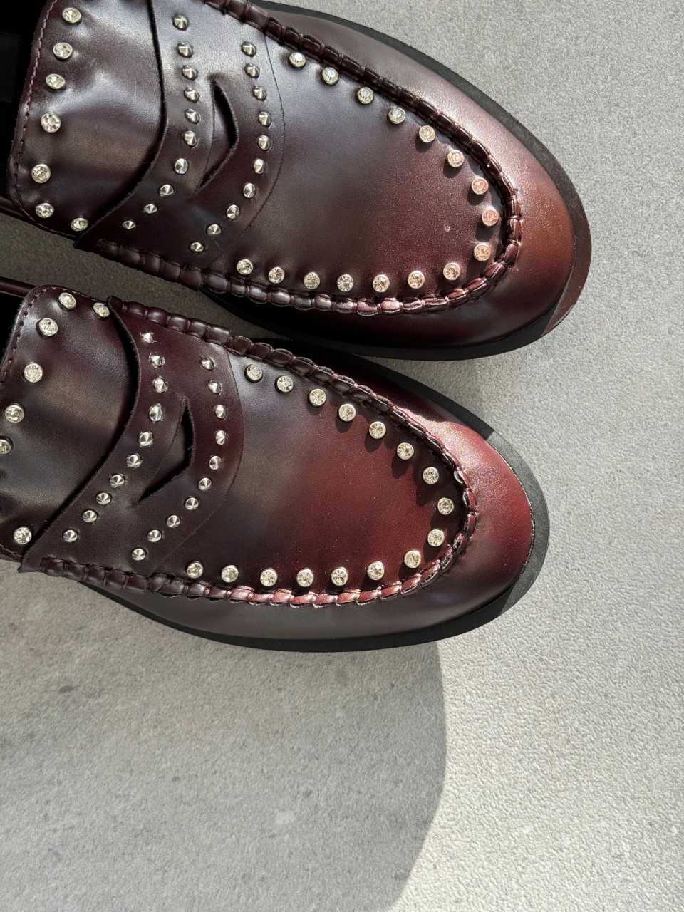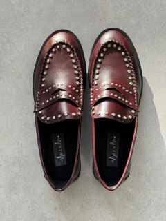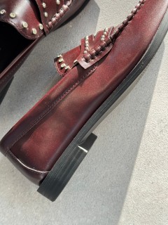 MOCASSINO IN ECOPELLE STRASS+BORCHIE SU TOMAIA FONDO FOMMA TACCO CM 1 CALZATA REGOLARE SE SI OSCILLA TRA DUE NUMERI SI CONSIGLIA DI ACQUISTARE UN NUMERO IN PIU'