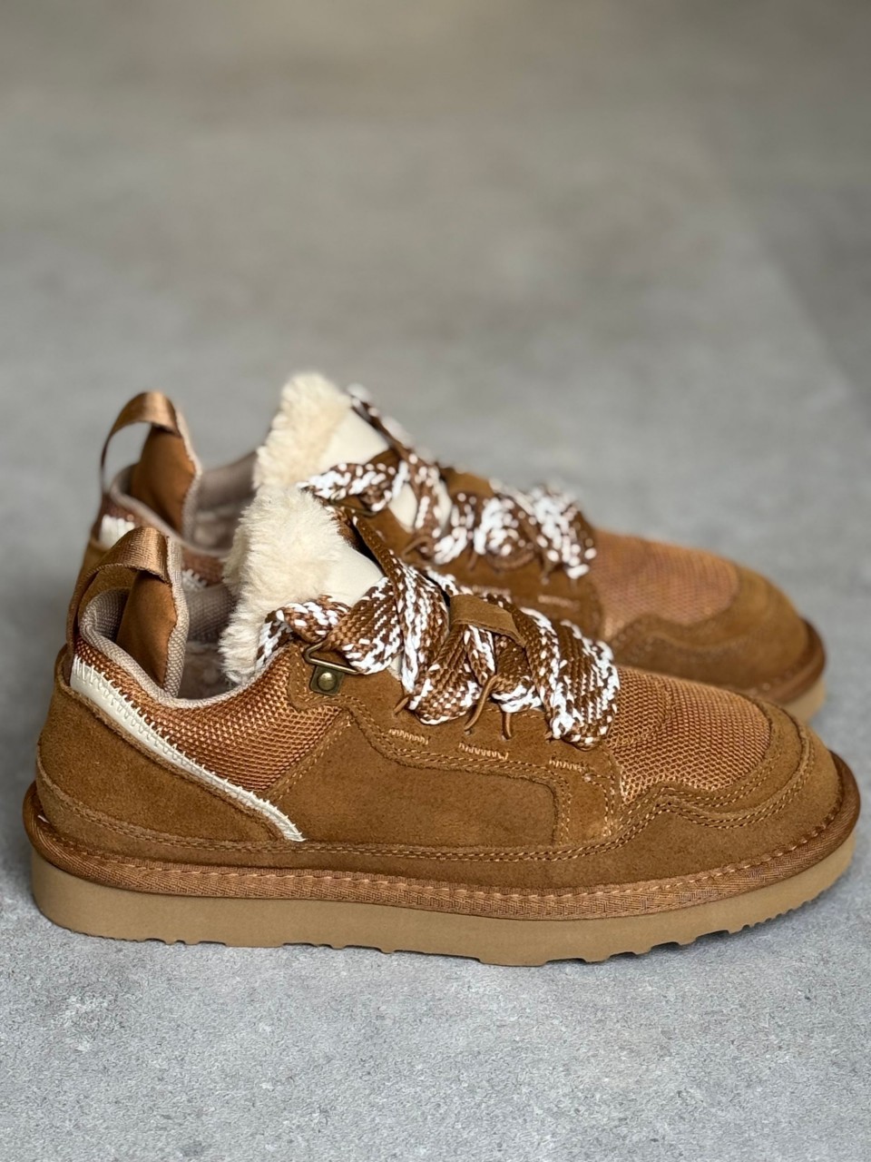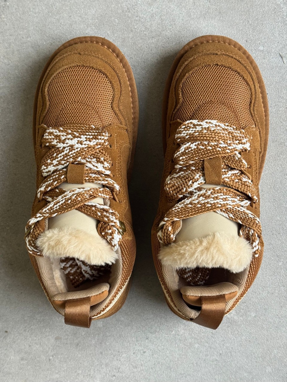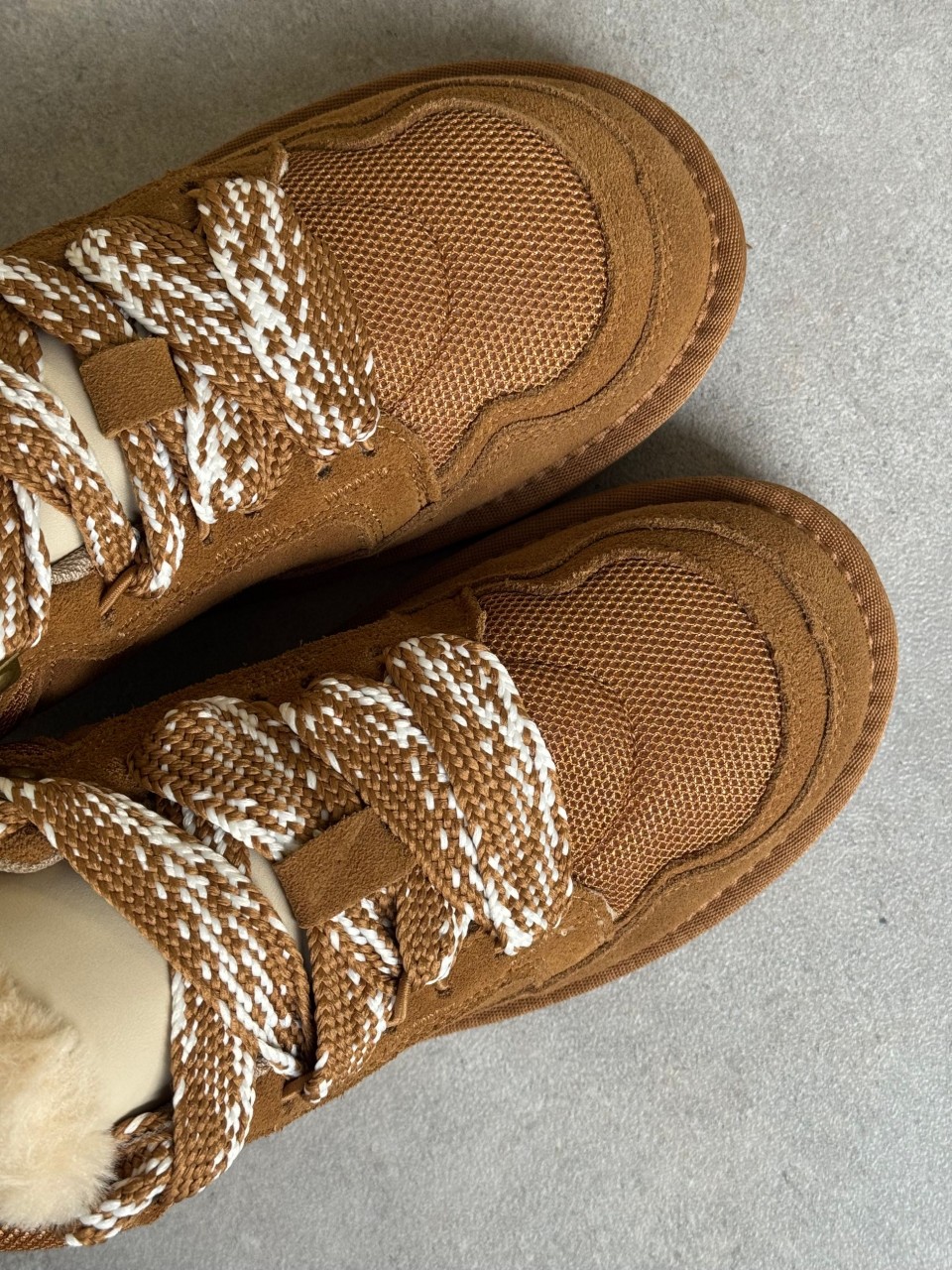 SCARPA CON LACCI IN PELLE CAMOSCIO E TESSUTO TECNICO.