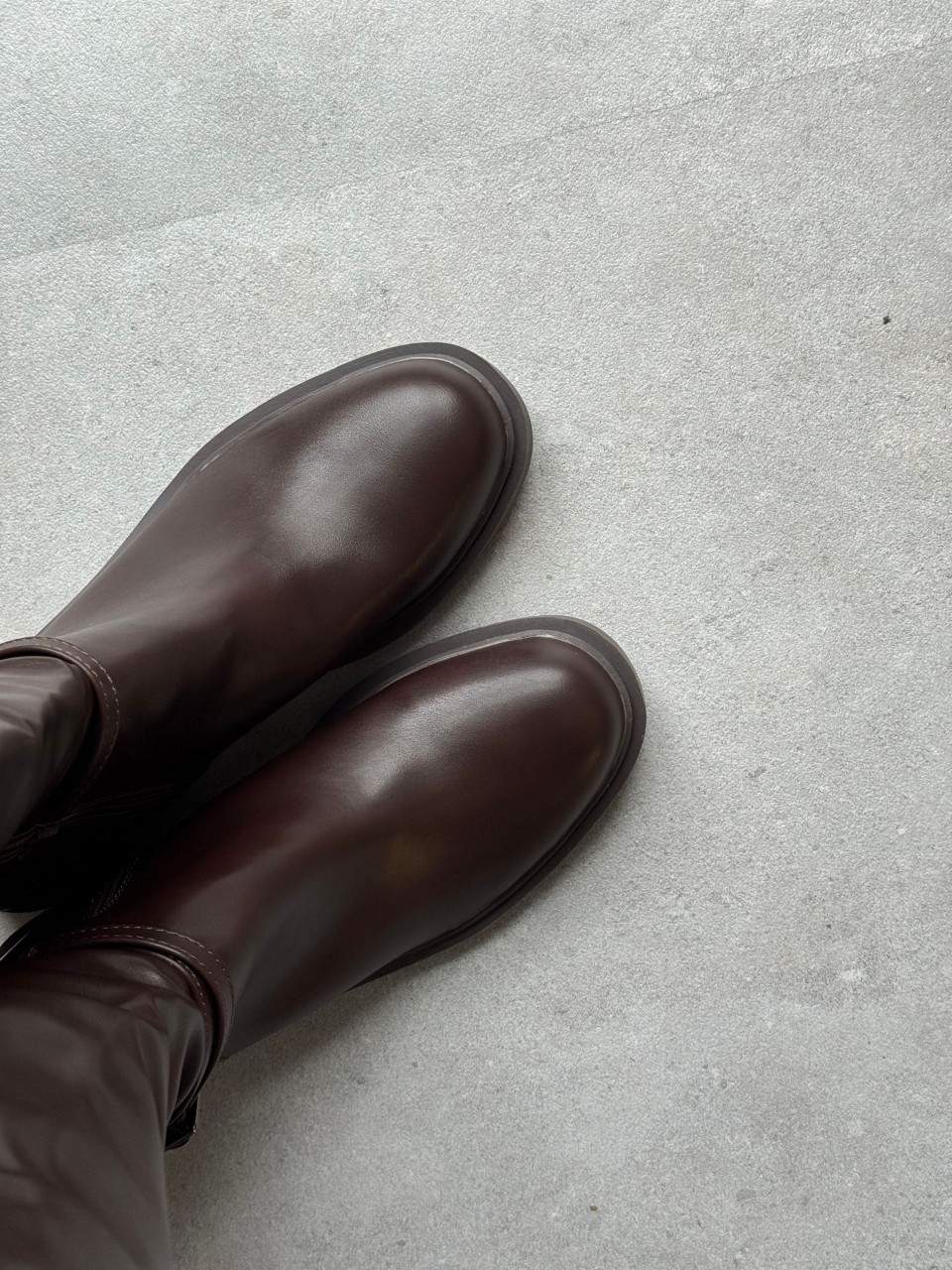 Stivale in ecopelle Punta rotonda , gambale posteriore elastico e zip interna. cinturino con fibbia alla caviglia fondo gomma tacco 3 cm. calzata regolare.