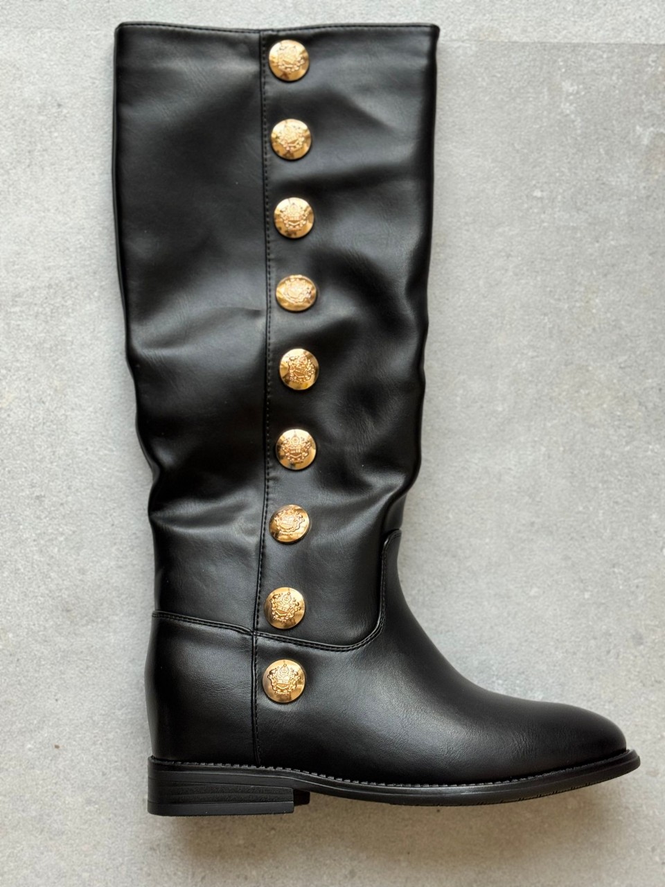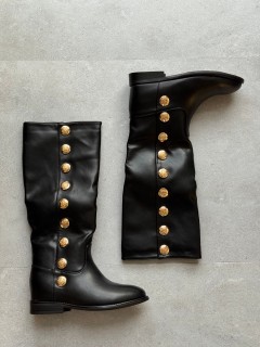 DETTAGLIO SUL GAMBALE DI BOTTONI GOLD.