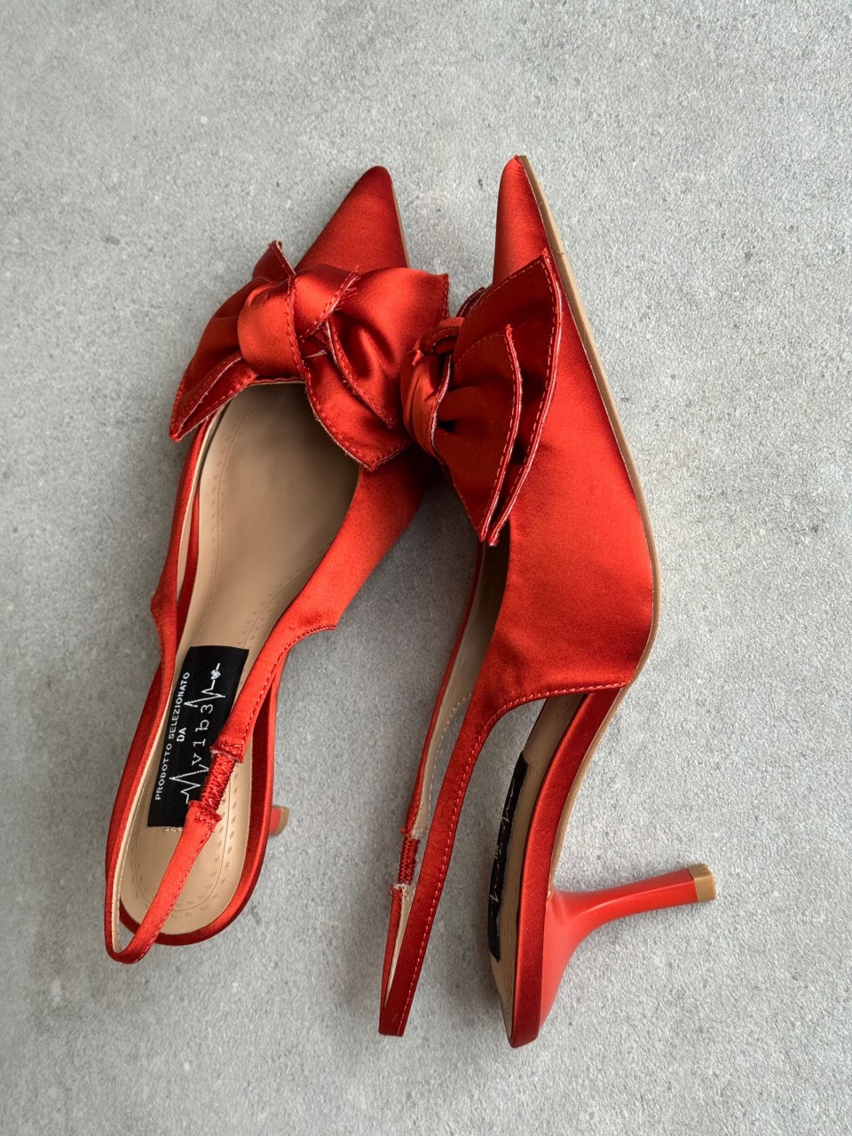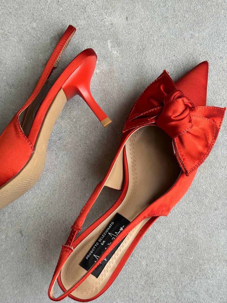 SLINGBACK A PUNTA IN RASO CON FIOCCO SOLETTA CONFORT TACCO CM 5 LISTINO DIETRO AL TALLONE CON ELASTICO CALZATA REGOLARE SE SI OSCILLA TRA DUE NUMERI SI CONSIGLIA DI ACQUISTARE UN NUMERO IN PIU'
