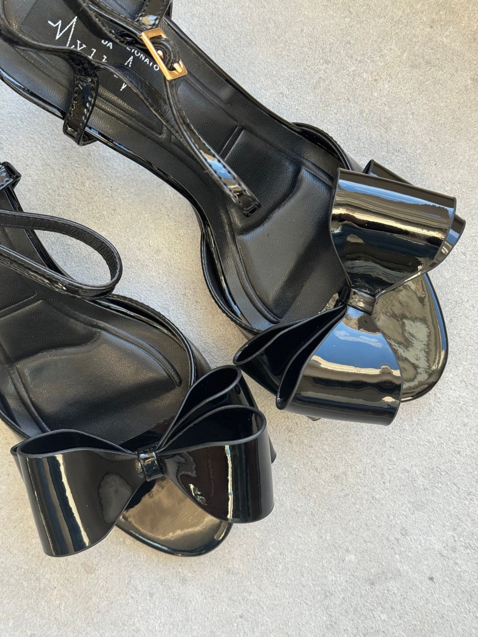SANDALO IN VERNICE CION FIOCCO SU TOMAIA.