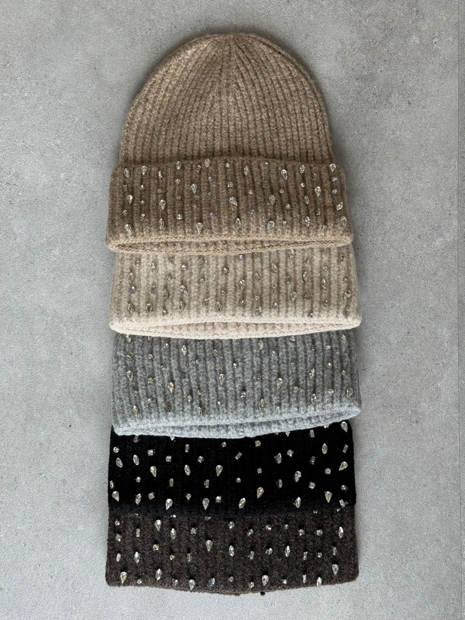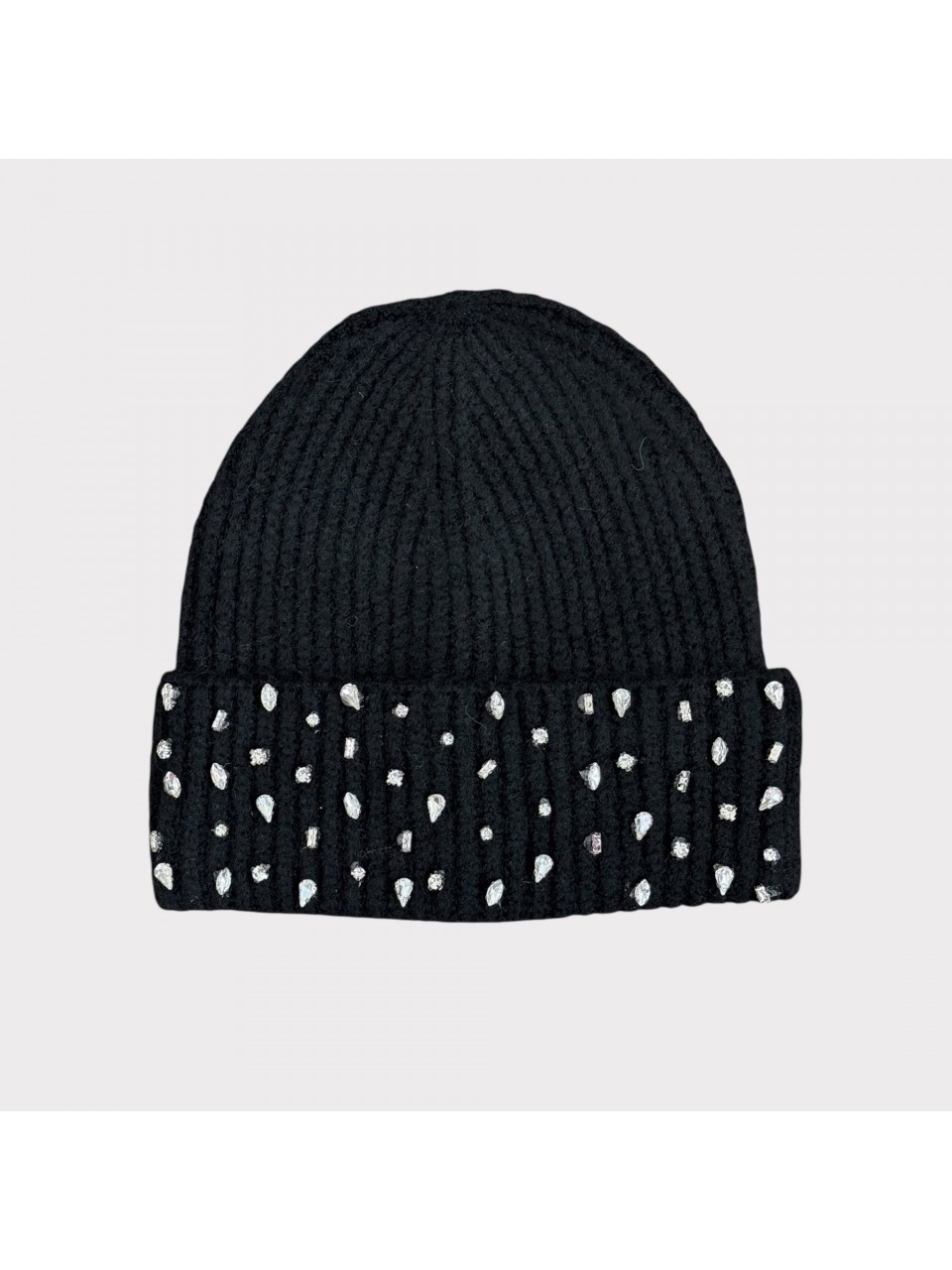 CUFFIA CON APPLICAZIONE STRASS SOLO SU RISVOLTO LANA+VISCOSA