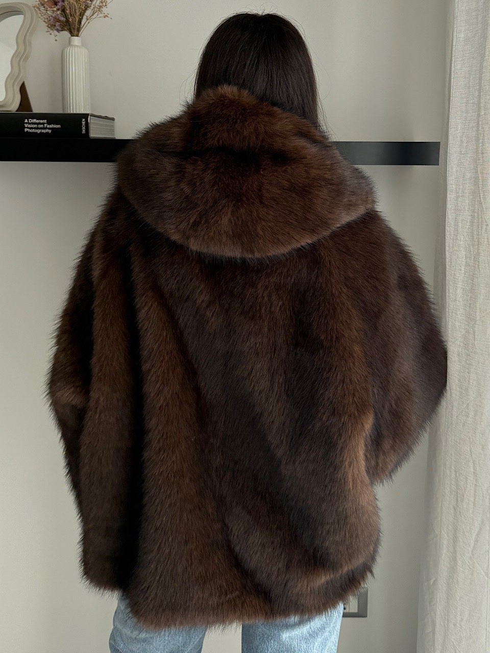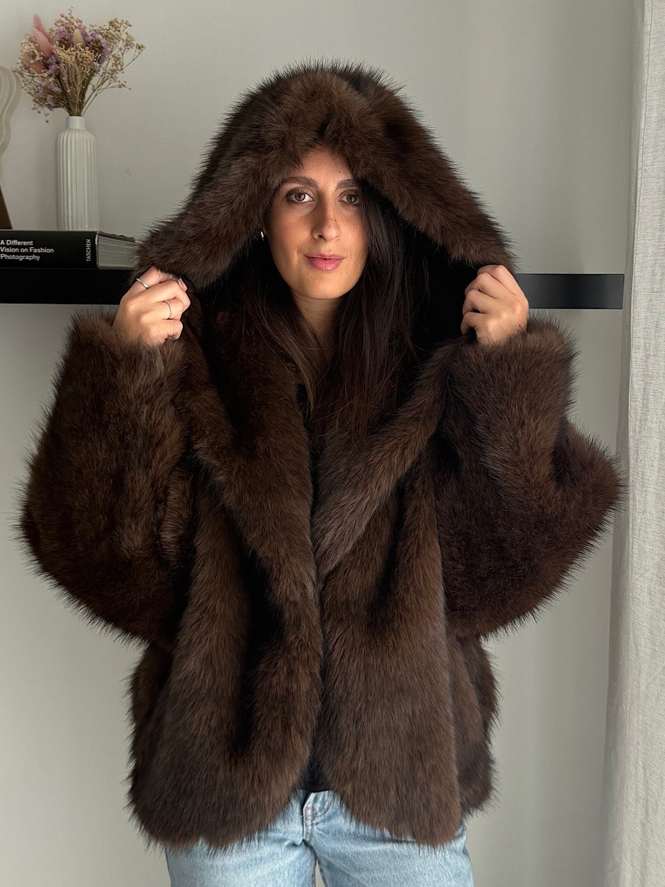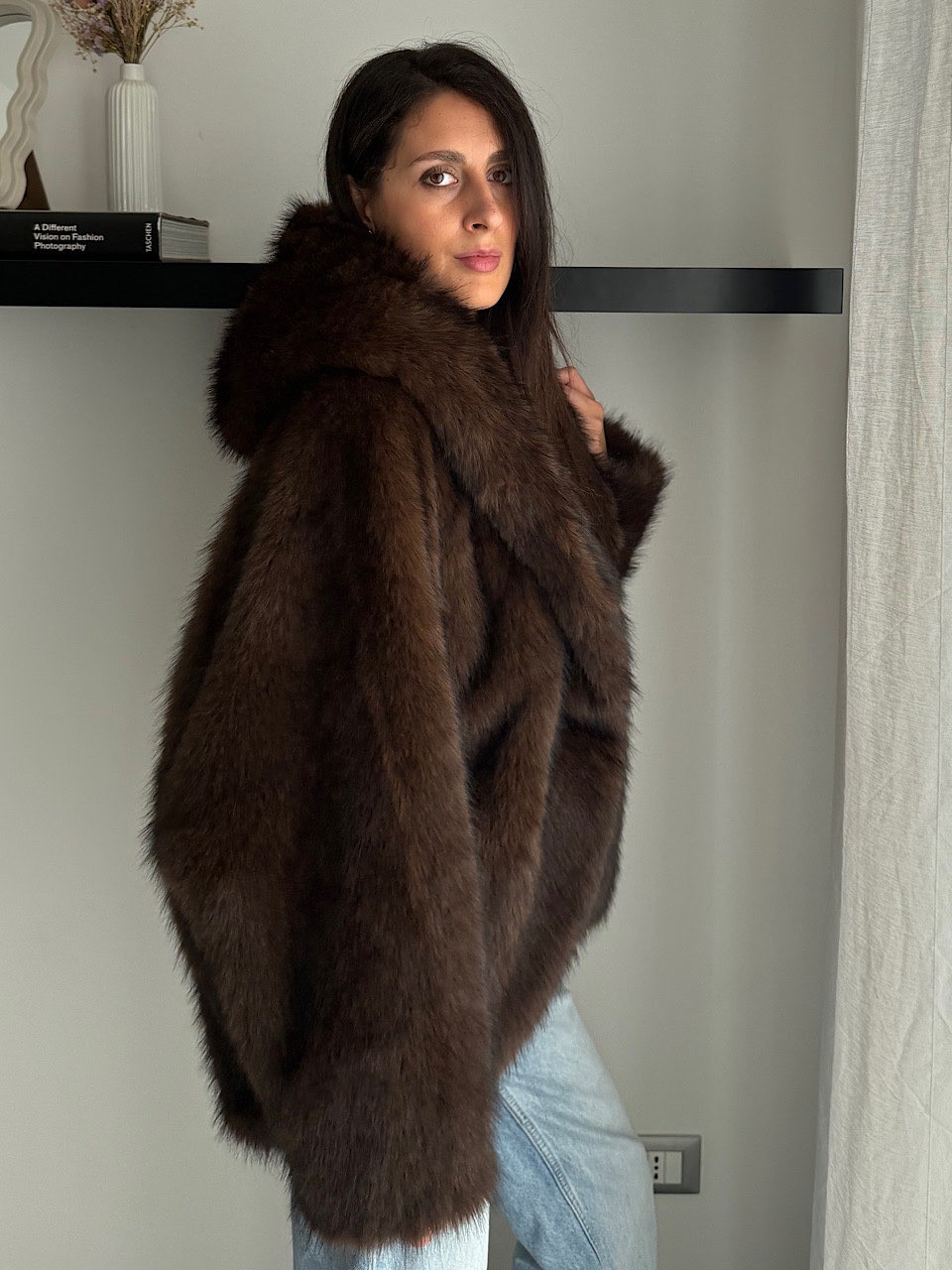 ECOPELLICCIA 100% POLIESTERE CLIPS INTERNA CON STRASS CAPPUCCIO TASCHE LATERALI LUNGHEZZA DALLA SPALLA CM 66 TAGLIA UNICA