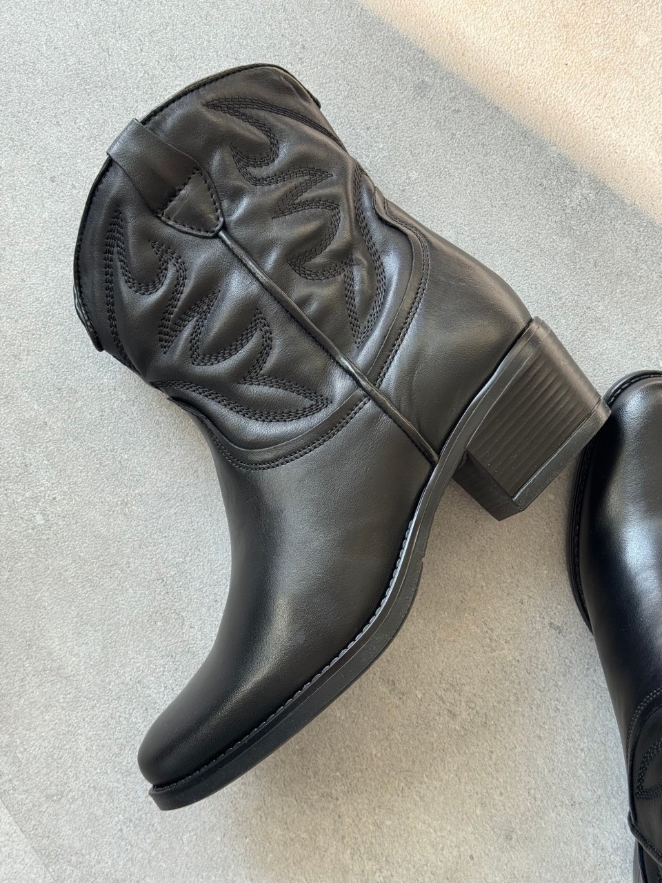 TEXANO BASSO IN PELLE , PUNTA LEGGERMENTE ARROTONDATA.